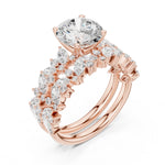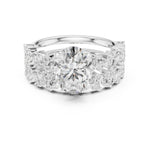 A bold celebration of artistry and elegance, this Floral Marquise & Round Diamond Cluster Ring is crafted to perfection. Featuring a breathtaking 2.00 ct  diamond paired with an intricate cluster of marquise and round accent diamonds, this design radiates brilliance and sophistication. The band showcases a nature-inspired floral motif, where every petal sparkles with meticulously placed diamonds, giving the piece a unique and regal appeal.