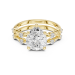 Celebrate your forever with this exquisite bridal set, designed to symbolize elegance and commitment. The centerpiece showcases a brilliant 2.50-carat diamond held securely in a classic four-prong setting, radiating unmatched sparkle. The matching band features delicately set side stones, adding extra brilliance and completing the luxurious look.