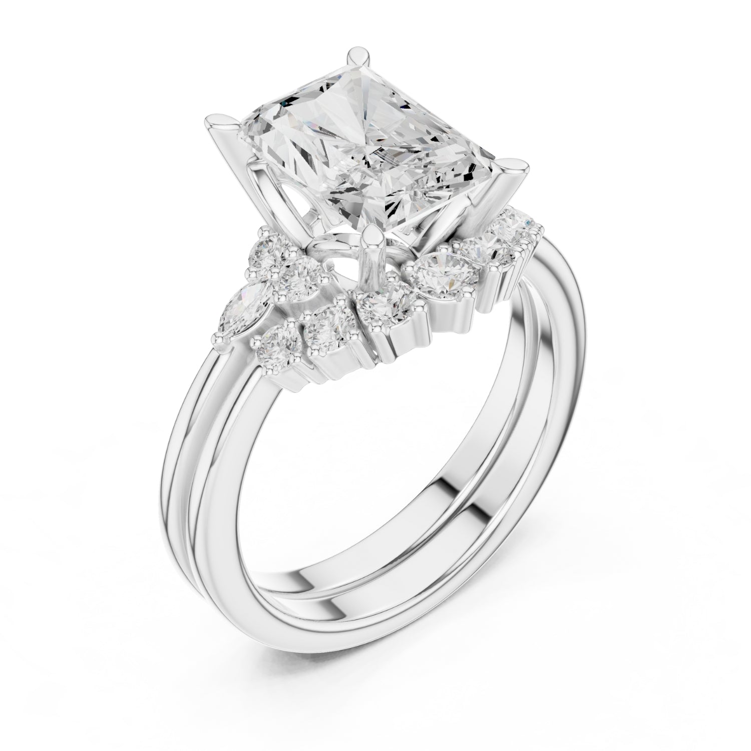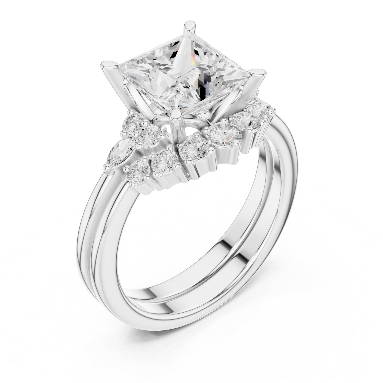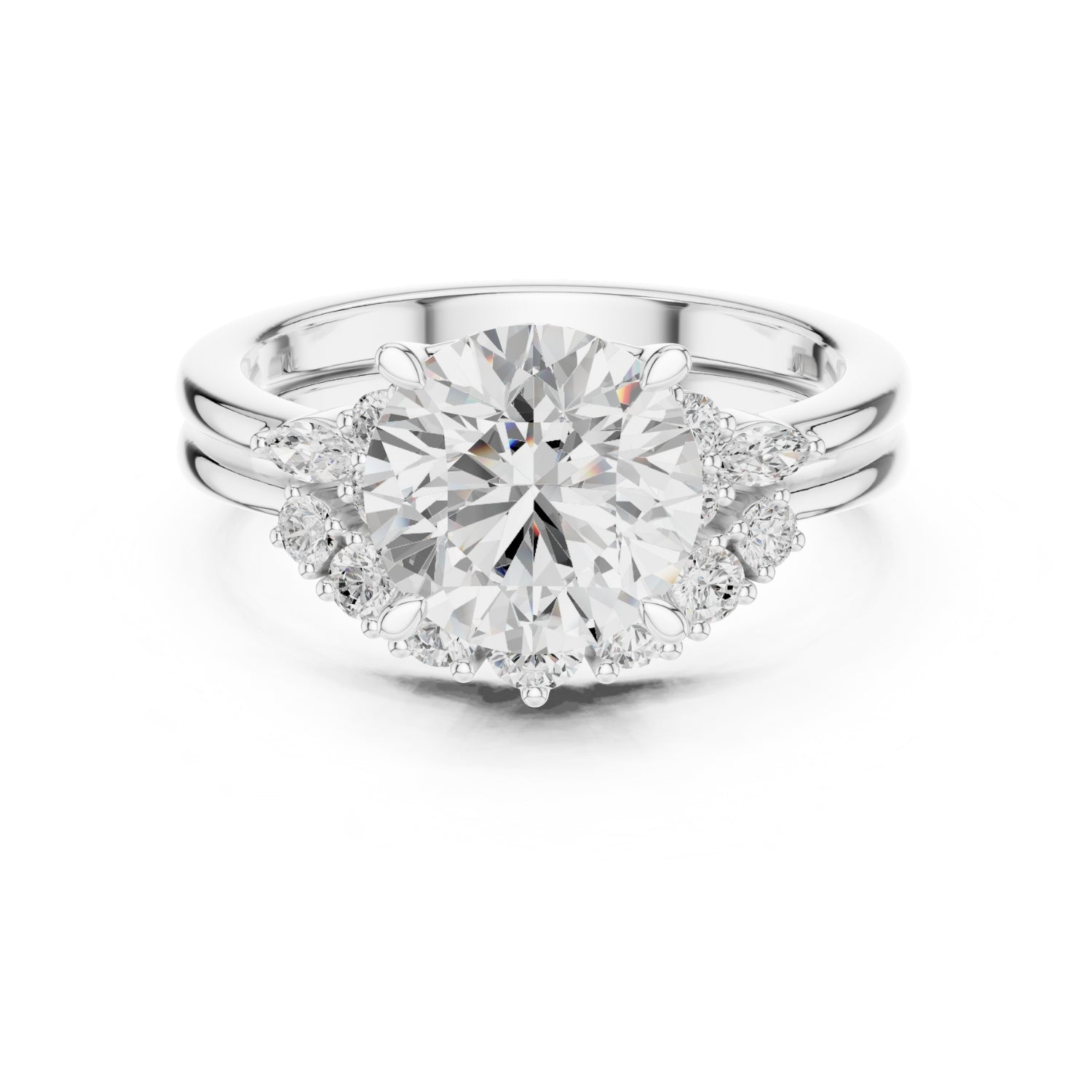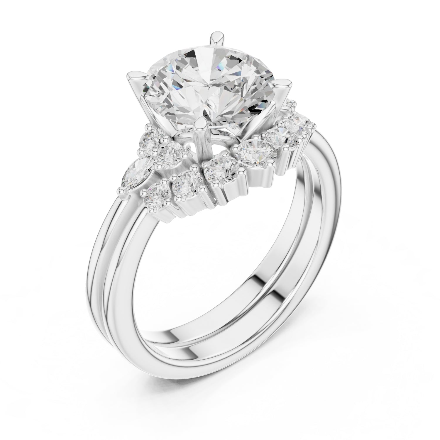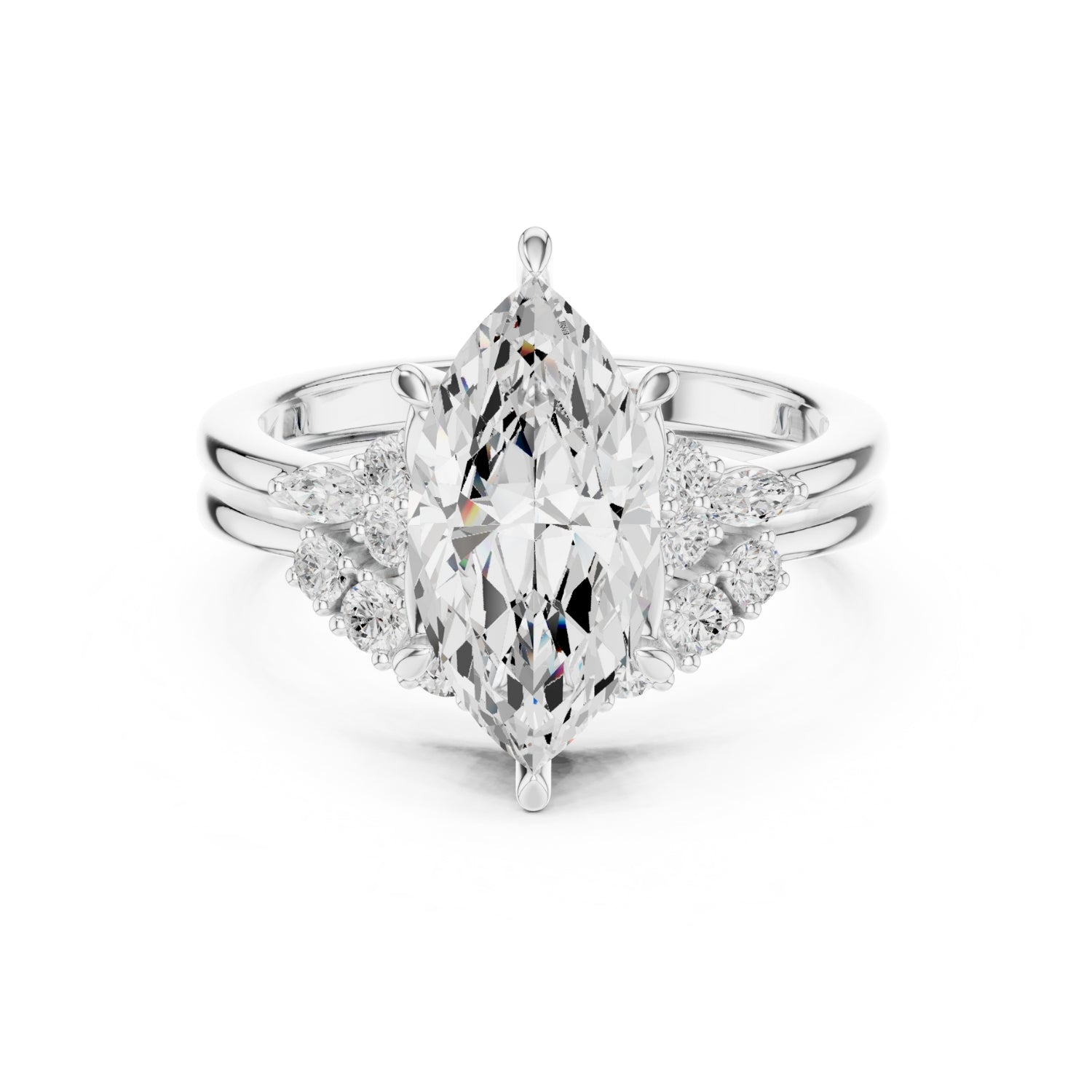 Diamond Bridal Set Ring with Marquise & Round Accent Diamonds