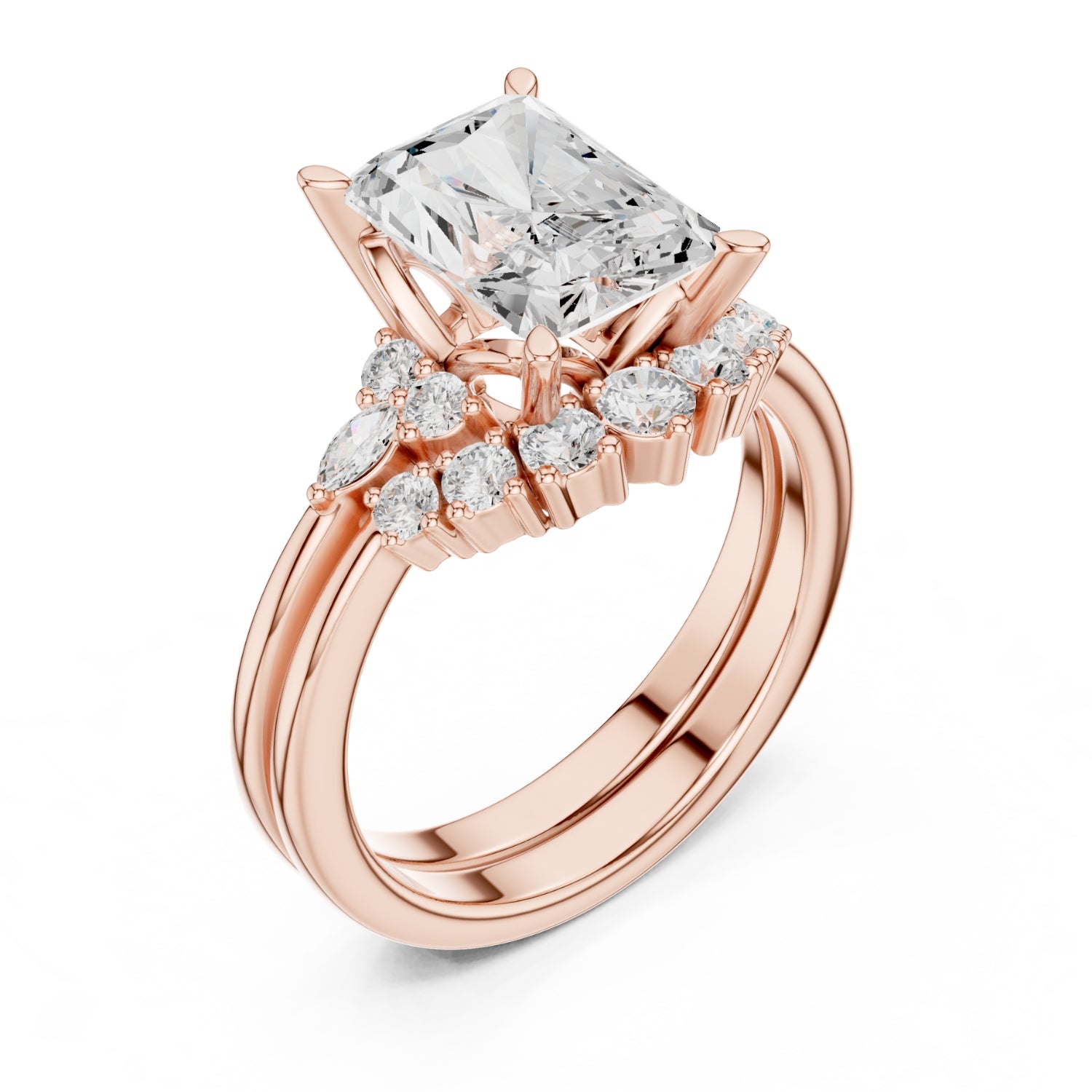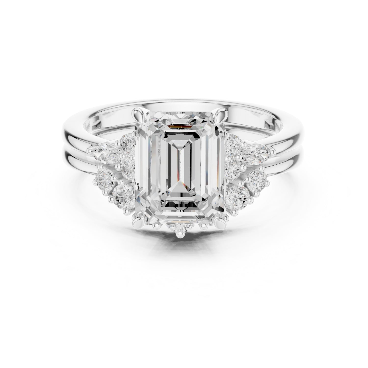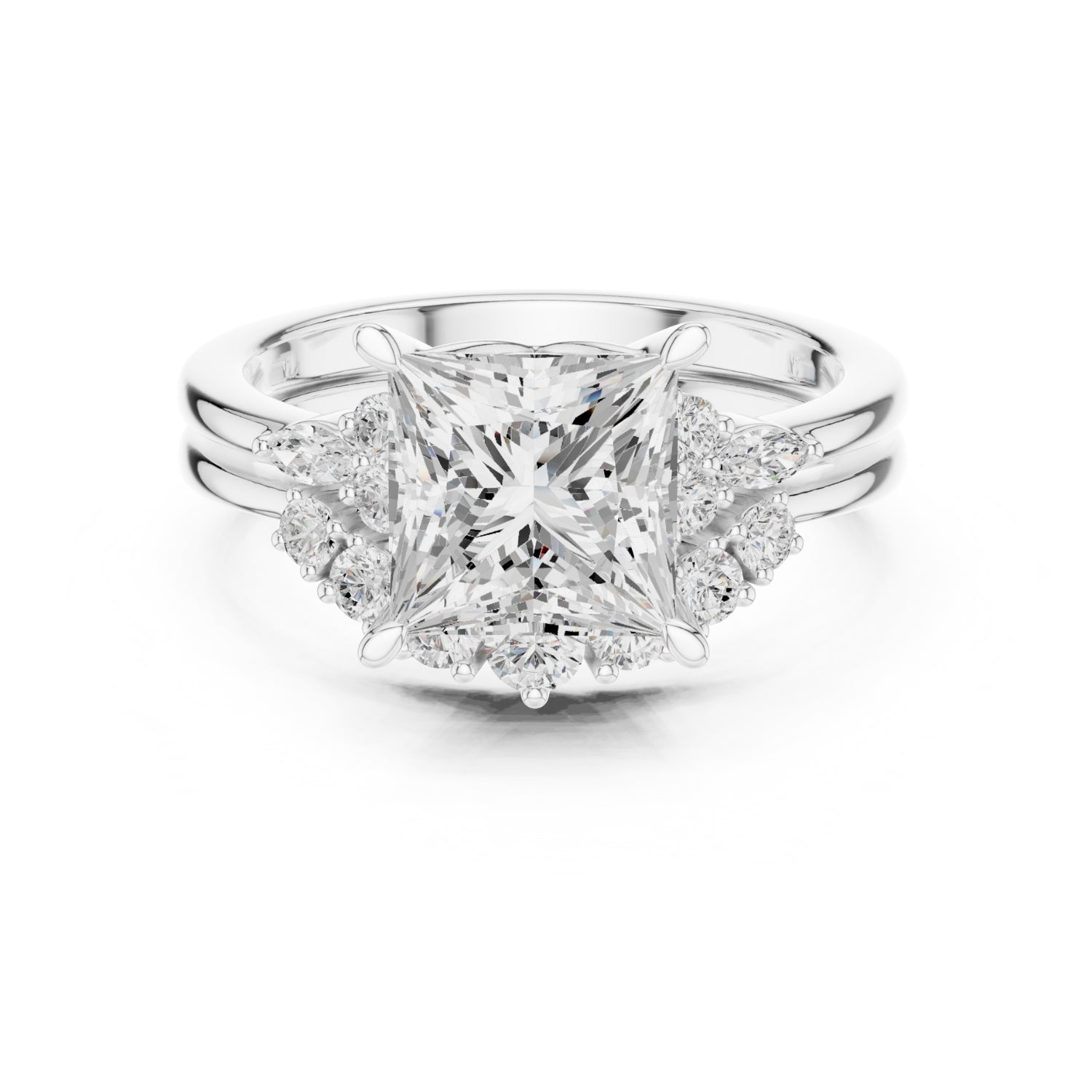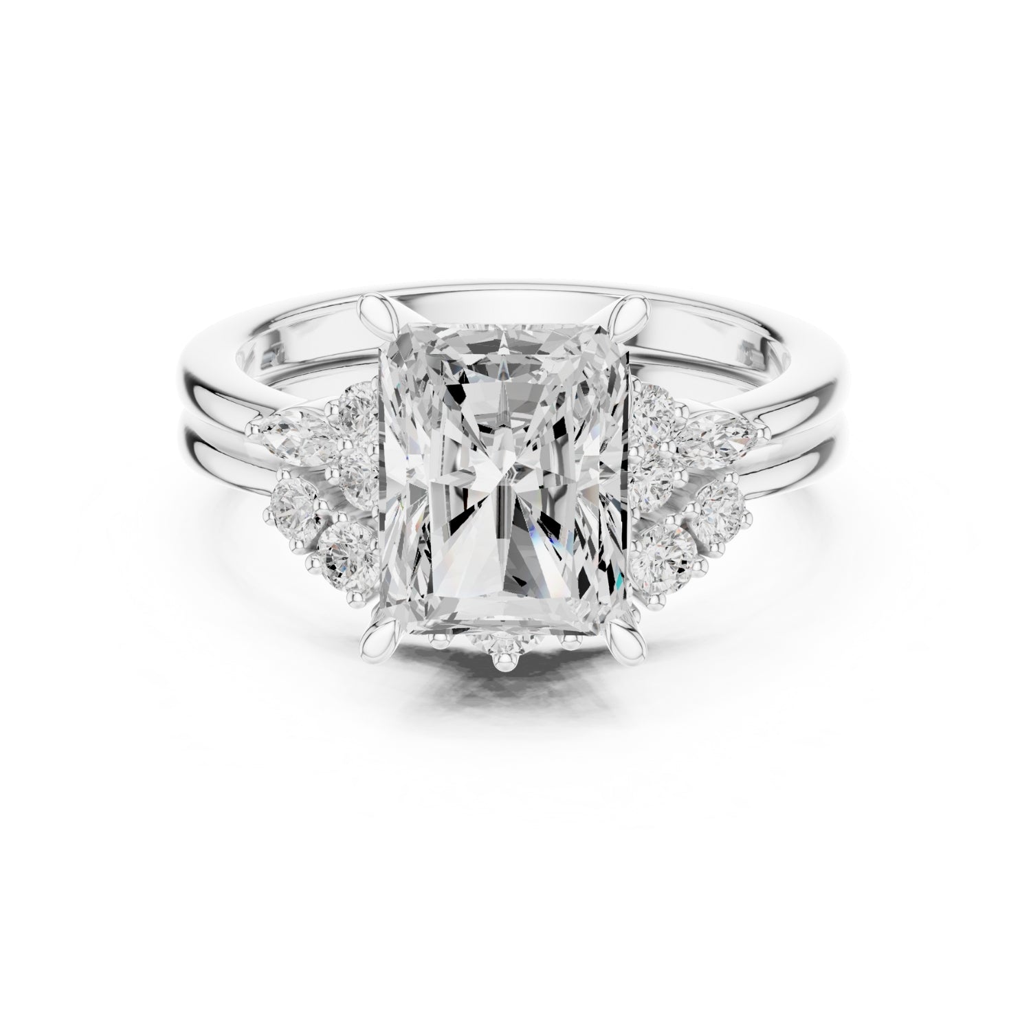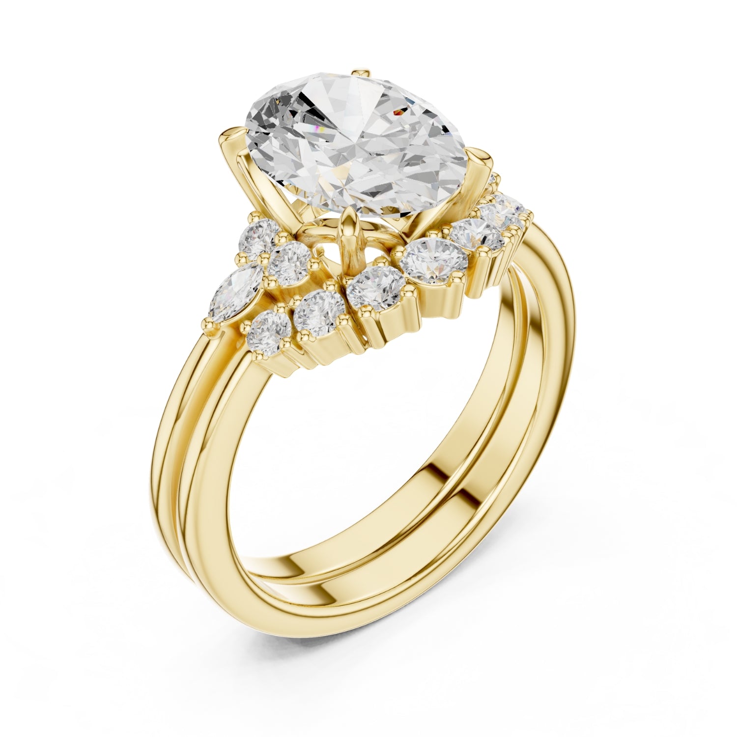 Diamond Bridal Set Ring with Marquise & Round Accent Diamonds