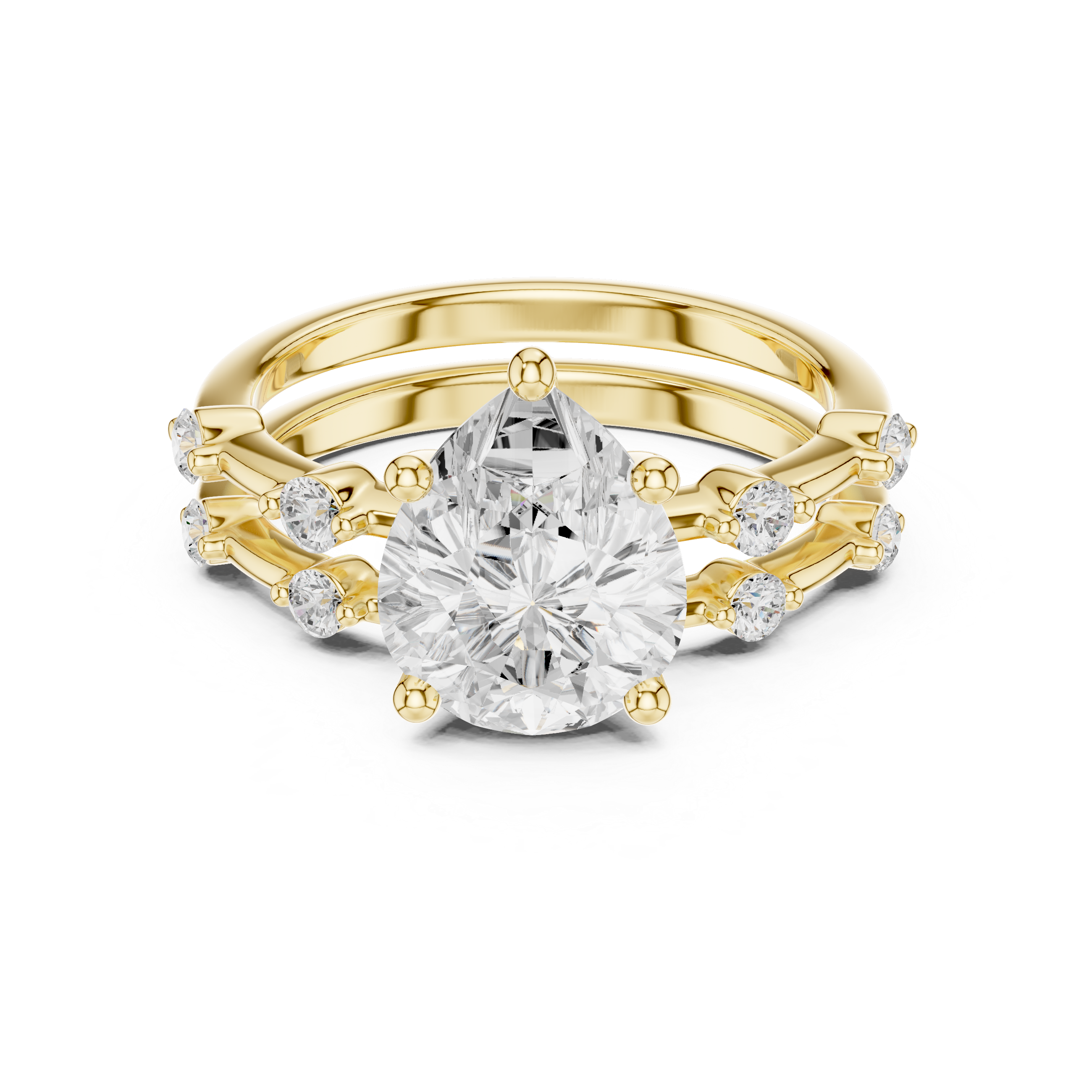 Crafted in your choice of 14K or 10K gold, this bridal set combines timeless beauty with modern craftsmanship. Perfect for engagements and weddings, it offers the ideal blend of sophistication and romance.