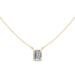 Elevate your style with this Diamond Solitaire Pendant Necklace, crafted to highlight the timeless elegance of a step-cut diamond. The 2.50-carat t diamond is secured in a refined four-prong basket setting, allowing maximum brilliance and a clean geometric appeal. Suspended gracefully from a delicate chain, this pendant blends modern sophistication with classic charm, making it perfect for both everyday wear and special occasions.