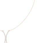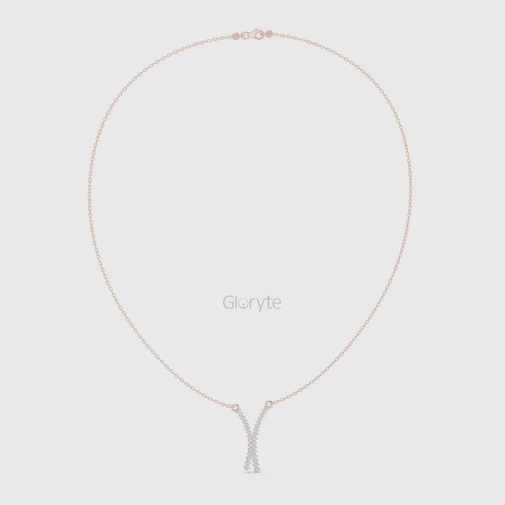 A modern twist on elegance, this crossover pendant necklace features two sleek rows of round diamonds, gracefully intersecting to create a fluid and stylish design. Perfect for everyday wear or a sophisticated evening look, it embodies both simplicity and brilliance.