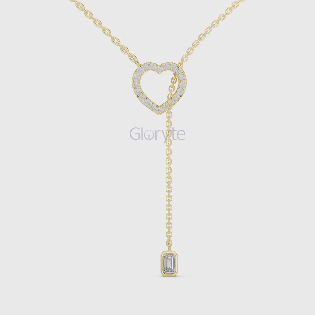 Celebrate elegance with this stunning diamond heart drop pendant necklace, featuring a sparkling open-heart centerpiece adorned with diamonds and a delicate hanging emerald-cut accent stone. The sleek chain is designed with a side mini-heart charm, adding a romantic touch to this graceful piece. Perfect as a gift of love or a personal keepsake, this pendant effortlessly blends timeless beauty with modern style.