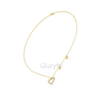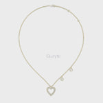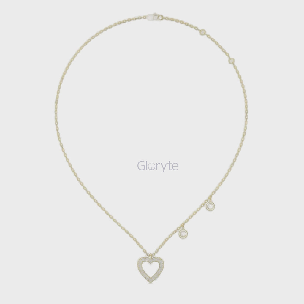 Add a touch of romance and sparkle to your everyday style with this diamond heart pendant necklace. The open-heart pendant is encrusted with brilliant diamonds, complemented by two delicate bezel-set diamond drops along the chain for an elegant and playful touch. Designed to capture both love and luxury, this piece is perfect as a gift for someone special or as a timeless addition to your own collection.