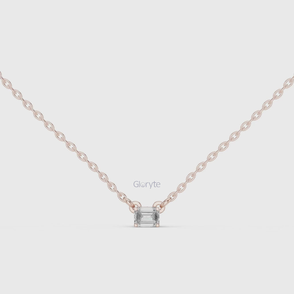 - Emerald Cut Solitaire Diamond Pendant Necklace
