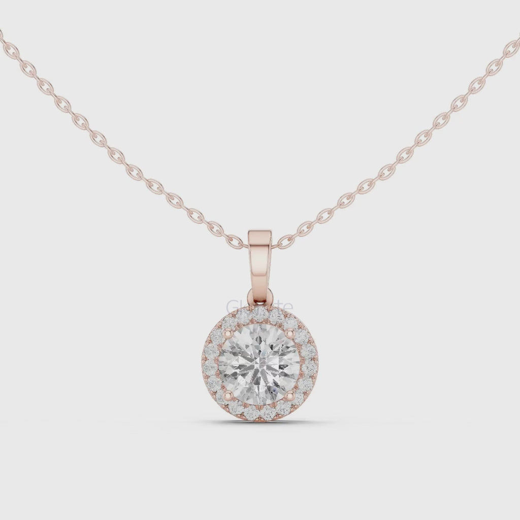 - Round Halo Diamond Pendant Necklace