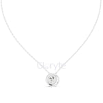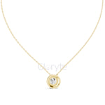 Elegant round halo diamond pendant necklace featuring a dazzling 2.10 CT round-cut solitaire diamond, encircled by a halo of 19 round mele diamonds totaling 0.285 CT. Crafted in 14KT gold, this timeless piece radiates brilliance and luxury, perfect for everyday elegance or special occasions.
