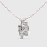 A bold and modern necklace featuring an emerald-cut diamond cluster in a geometric design. This pendant creates a striking statement with its structured layout of step-cut diamonds, offering brilliance with clean sophistication. Perfect for those who love contemporary elegance with timeless appeal.