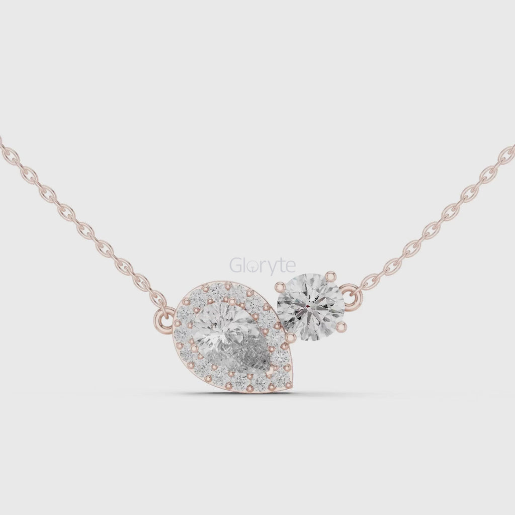 A timeless symbol of love and eternity, this infinity pendant features two pear-cut diamonds at the center, framed with pavé-set round diamonds for added brilliance. Designed in 14KT gold, this elegant necklace is the perfect gift for celebrating everlasting bonds.