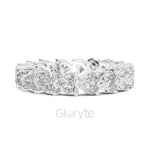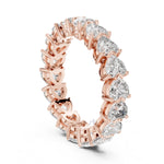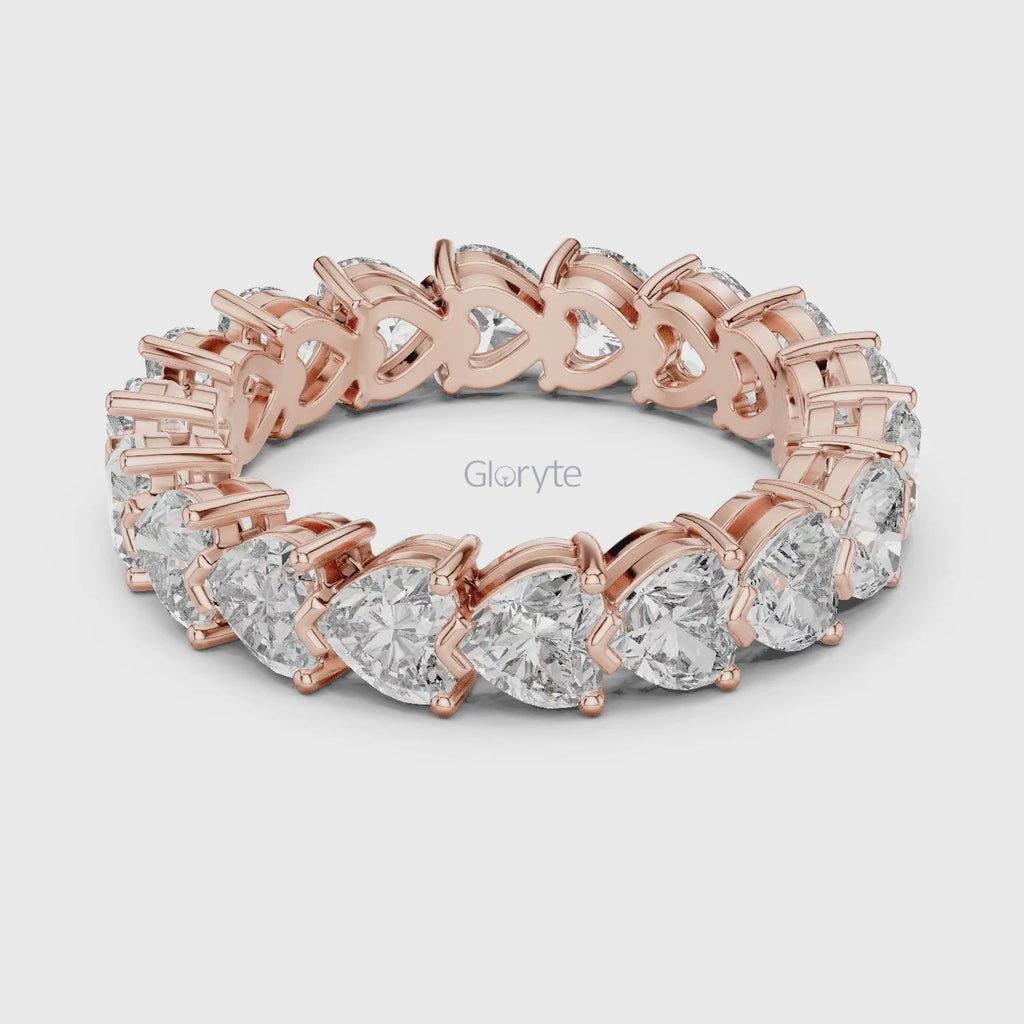 This romantic eternity band features 18 dazzling heart-shaped diamonds, beautifully set in secure collet settings. Symbolizing love and commitment, this timeless piece is the perfect choice for weddings, anniversaries, or special occasions.