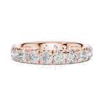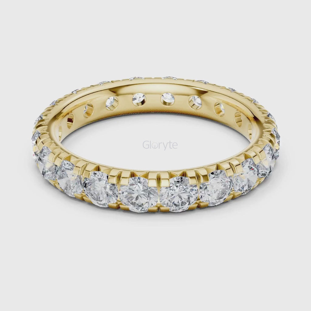 This classic eternity band features a continuous circle of round-cut diamonds set in a refined U-cut style. Its timeless elegance represents eternal love, making it an ideal wedding or anniversary band.