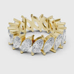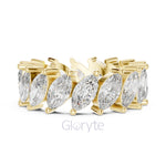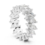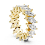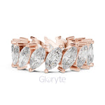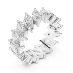A modern crown-inspired band designed with a graceful chevron curve, perfectly accentuated by a row of graduated round-cut diamonds. Each stone is securely set in a sleek collet setting, creating a luminous silhouette that symbolizes elegance and strength. Whether worn alone, stacked, or as a complement to your engagement ring, this band adds a touch of royal sophistication to your everyday style.