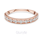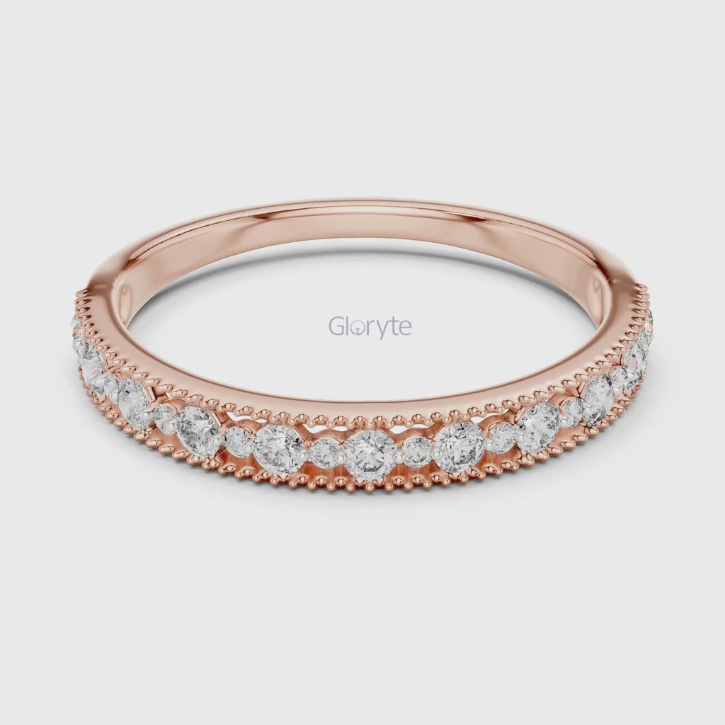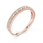 Elevate your elegance with this milgrain diamond band, featuring a row of sparkling round brilliant diamonds bordered by intricate milgrain edges. The delicate detailing adds vintage charm, making this band a perfect choice for weddings, anniversaries, or as a stackable everyday ring.