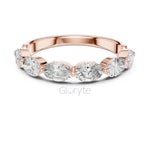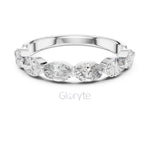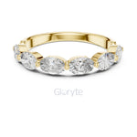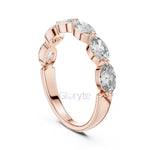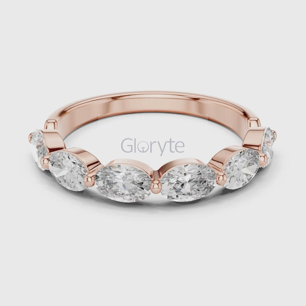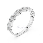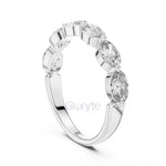 This elegant half eternity ring showcases six oval-cut diamonds, each securely held in a refined prong setting that enhances their natural brilliance. Perfect as a wedding band, anniversary ring, or stackable everyday piece, its timeless design combines sophistication with effortless wearability.