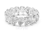 This dazzling eternity band features a full circle of pear-cut diamonds set in secure collet settings. The teardrop-shaped diamonds create a bold yet elegant statement, symbolizing everlasting elegance and love. Perfect for weddings, anniversaries, or as a luxurious fashion piece.