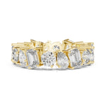 This unique eternity band combines pear, round, and emerald-cut diamonds in a bold alternating pattern. Set in secure collet settings, the mixed cuts create a striking balance of brilliance and elegance, making it an ideal...