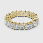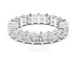 This eternity band features a continuous row of princess-cut diamonds, each expertly collet-set for maximum brilliance. A timeless and elegant symbol of everlasting love, designed to sparkle from every angle. Perfect for stacking or wearing solo.