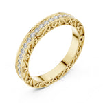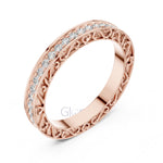 Bring timeless elegance to your collection with this vintage-inspired diamond eternity band. Featuring 42 round brilliant-cut diamonds in a delicate micro-prong setting, the ring is further enhanced with intricate vintage scrollwork along the band’s side gallery. The continuous sparkle and ornate detailing make this piece a perfect choice for weddings, anniversaries, or as a statement stacking ring.