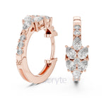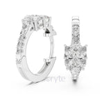 These elegant diamond hoop earrings feature a dazzling combination of pear-cut and round brilliant stones, creating a timeless yet contemporary look. The alternating arrangement of pear and round shapes delivers maximum sparkle from every angle, making them the perfect statement piece for both everyday wear and special occasions.