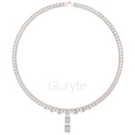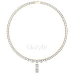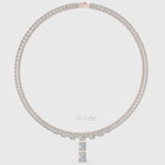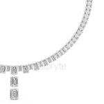 Exuding unmatched elegance, this tennis necklace is adorned with a continuous line of emerald-cut diamonds, brought together in perfect symmetry. The centerpiece features a striking three-stone drop, adding dramatic brilliance and sophistication. A timeless design crafted for red-carpet glamour and once-in-a-lifetime moments.
