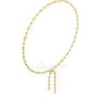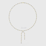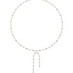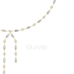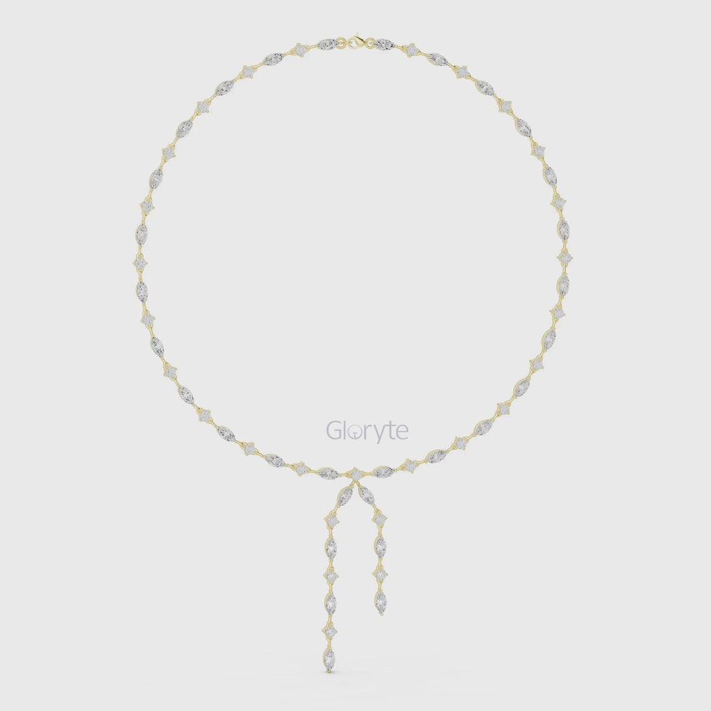 This elegant lariat necklace showcases a seamless blend of marquise-cut and round diamonds, gracefully set in a timeless design. With its cascading drop silhouette, it creates an elongating effect that enhances any neckline. A refined balance of brilliance and sophistication, perfect for both evening wear and modern bridal styling.