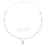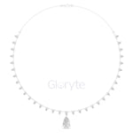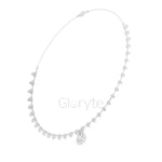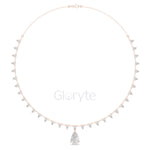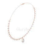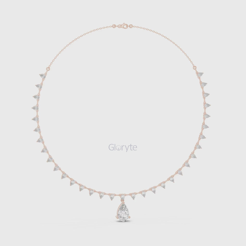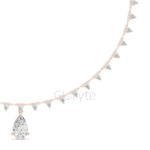 Graceful and eye-catching, this necklace showcases a striking pear-shaped diamond drop pendant, beautifully complemented by a line of smaller pear diamonds along the chain. Each diamond is collet-set to enhance brilliance and create a refined, luxurious look. A statement piece for special occasions and timeless elegance.