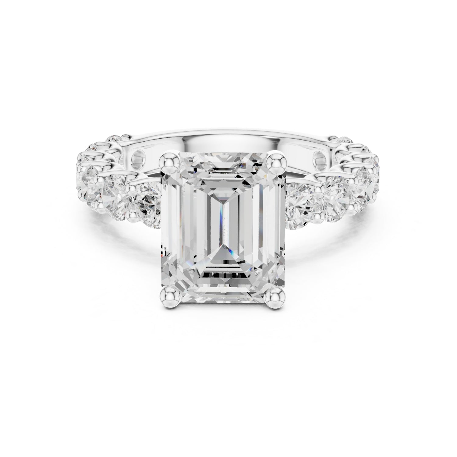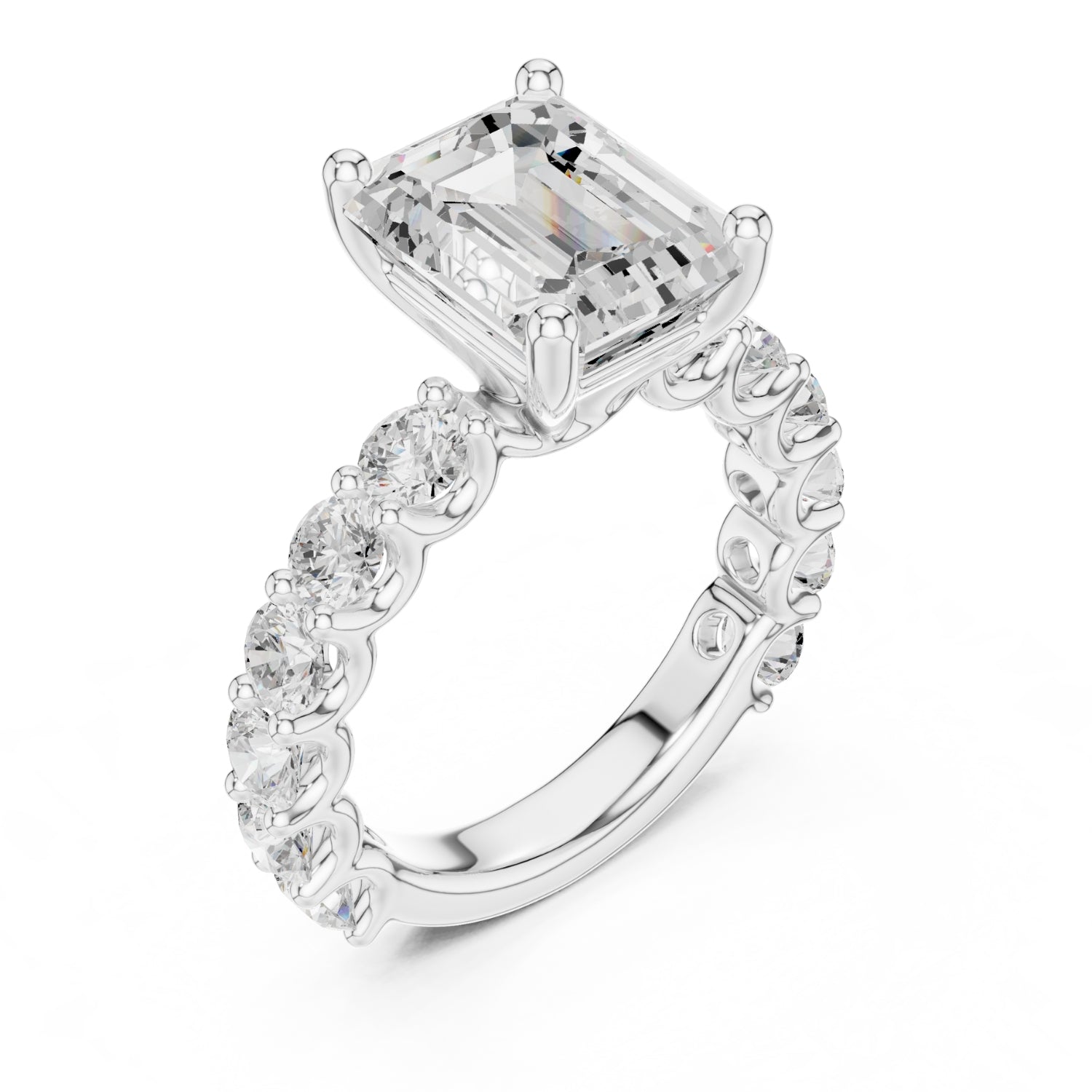 • Design Highlight: Bold 4ct centerpiece enhanced by dazzling round side stones