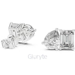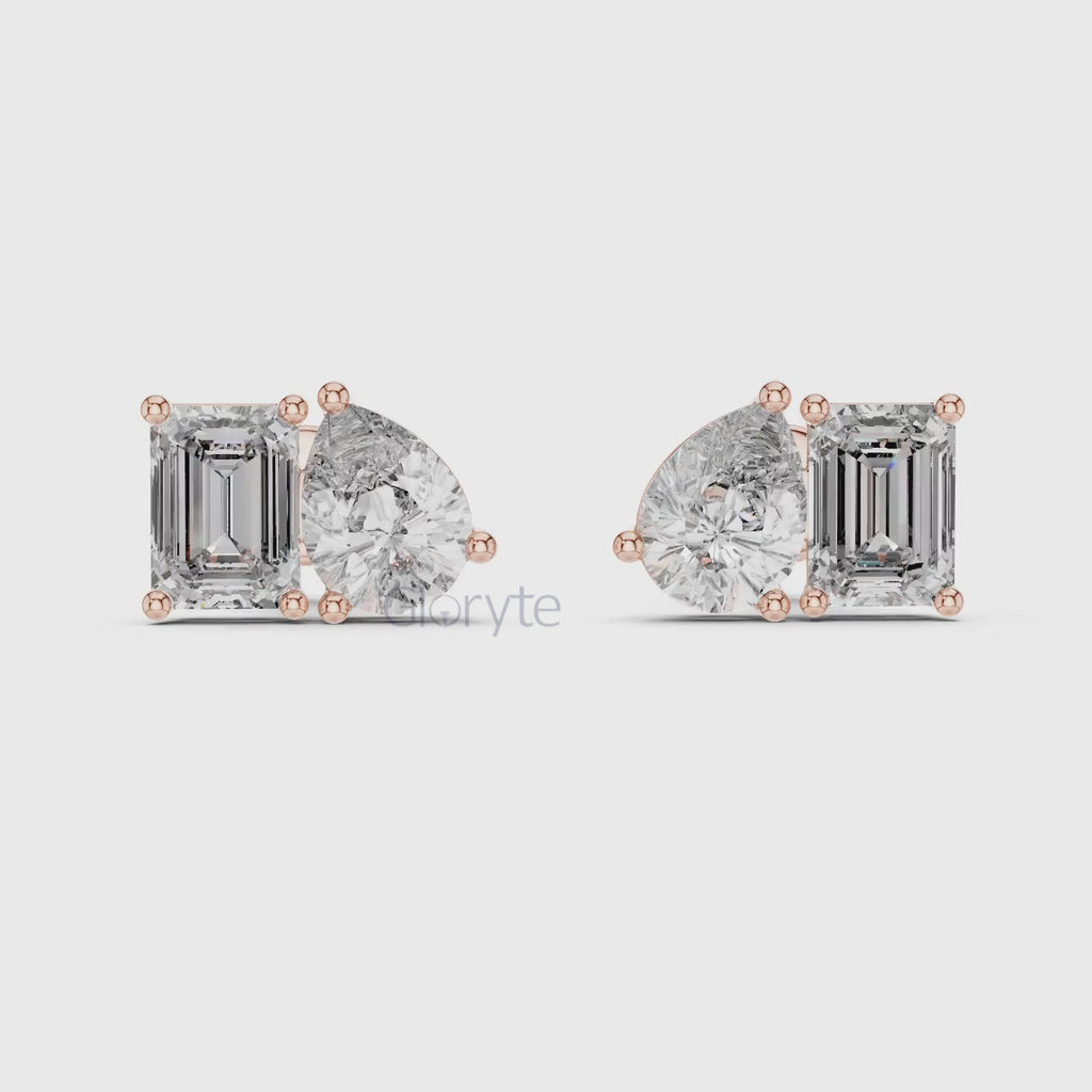 - Pear & Emerald-Cut Diamond Stud Earrings