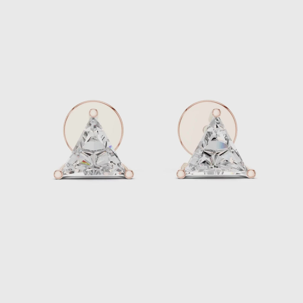 These elegant stud earrings feature two striking trillion-cut diamonds, each set in a secure collet setting. With their geometric brilliance and modern aesthetic, they are perfect for both formal occasions and everyday sophistication.