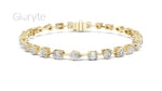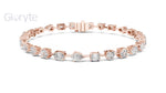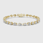 This stylish tennis bracelet features a mix of diamond shapes – round, heart, emerald, oval, and pear cuts – beautifully set in sleek collet settings. The combination of different cuts creates a modern, eye-catching design that sparkles with every angle. Perfect for adding a unique twist to everyday elegance or complementing your special occasion look.