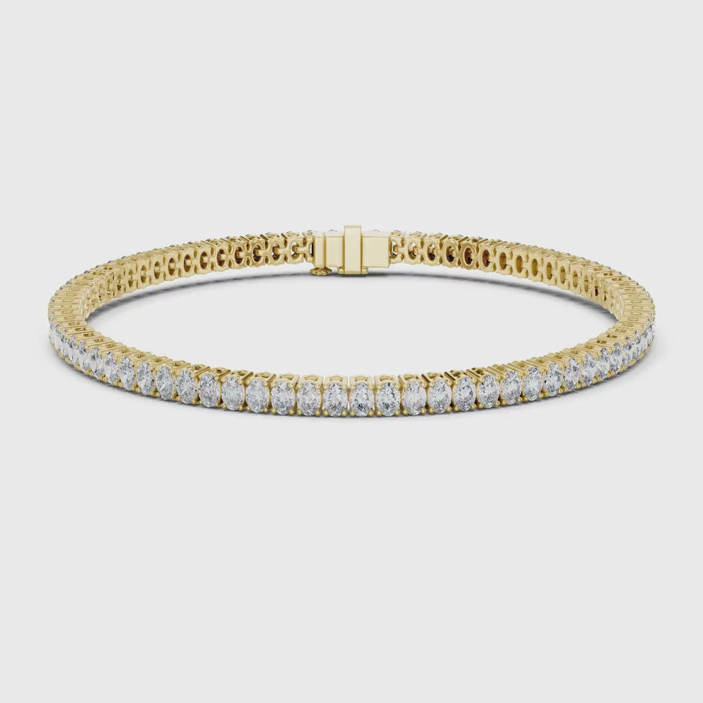 This elegant tennis bracelet showcases 79 oval-cut diamonds in a sleek collet setting, radiating timeless sophistication. A refined accessory, perfect for daily wear or to elevate evening attire.
