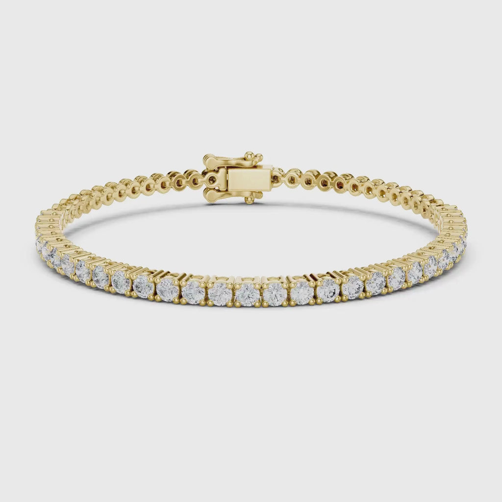 This delicate diamond tennis bracelet features 30 brilliant round-cut diamonds in a secure collet setting. Designed with timeless elegance, it’s the perfect piece to complement both everyday wear and evening glamour.
