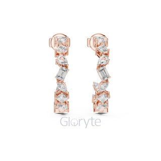 Elegant Multi-Cut Diamond Drop Earrings – Princess, Pear, Oval & Emerald Cuts