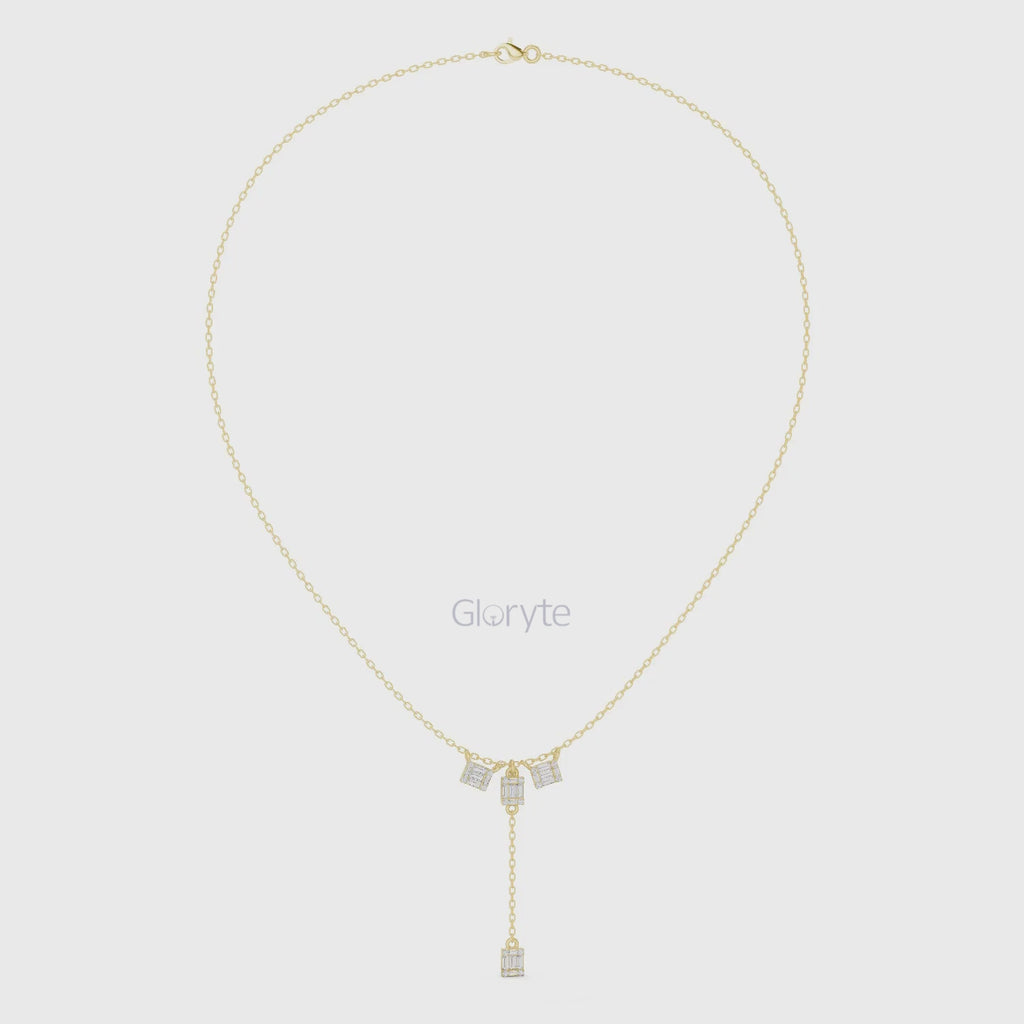 Baguette Cluster Drop Diamond Necklace