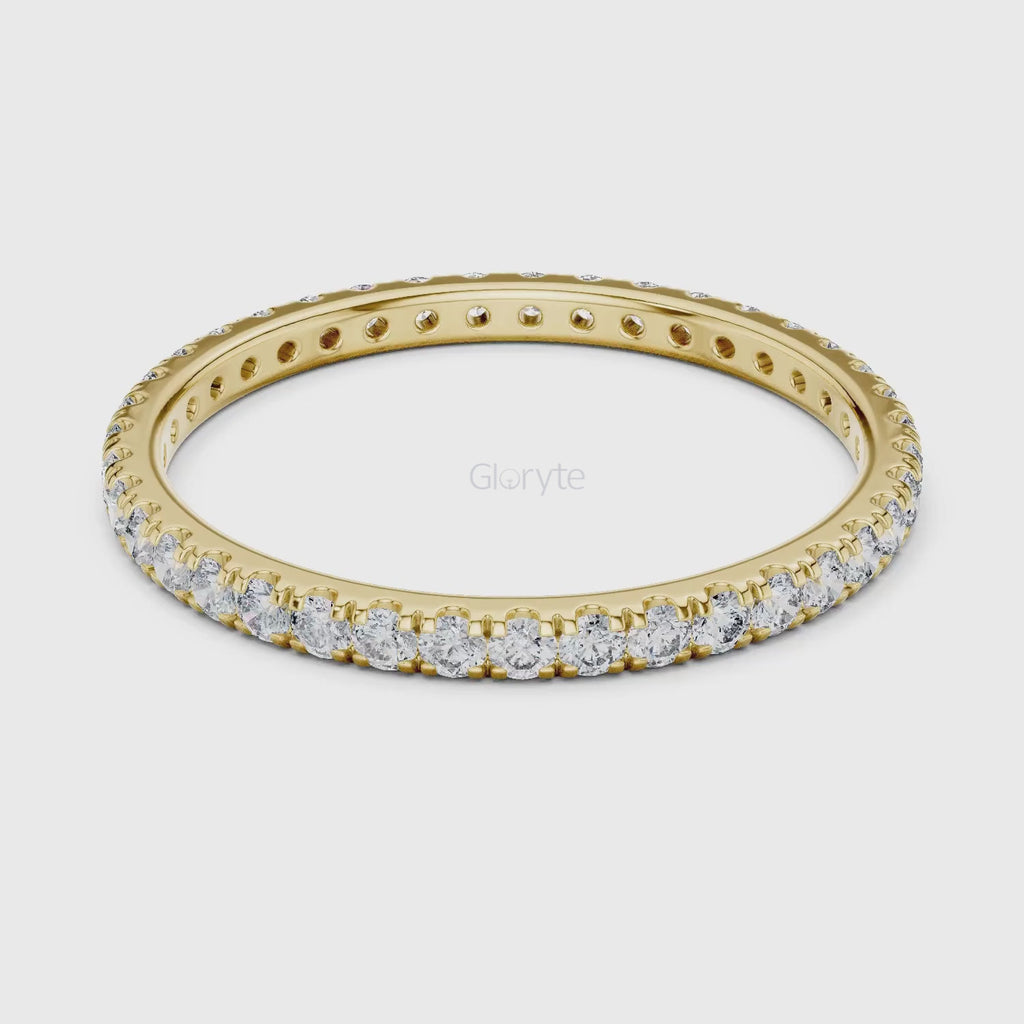 A timeless eternity band featuring a full circle of meticulously set round brilliant diamonds in an elegant U-cut setting. The slim and refined silhouette makes it perfect for stacking or wearing solo, symbolizing eternal love and commitment.