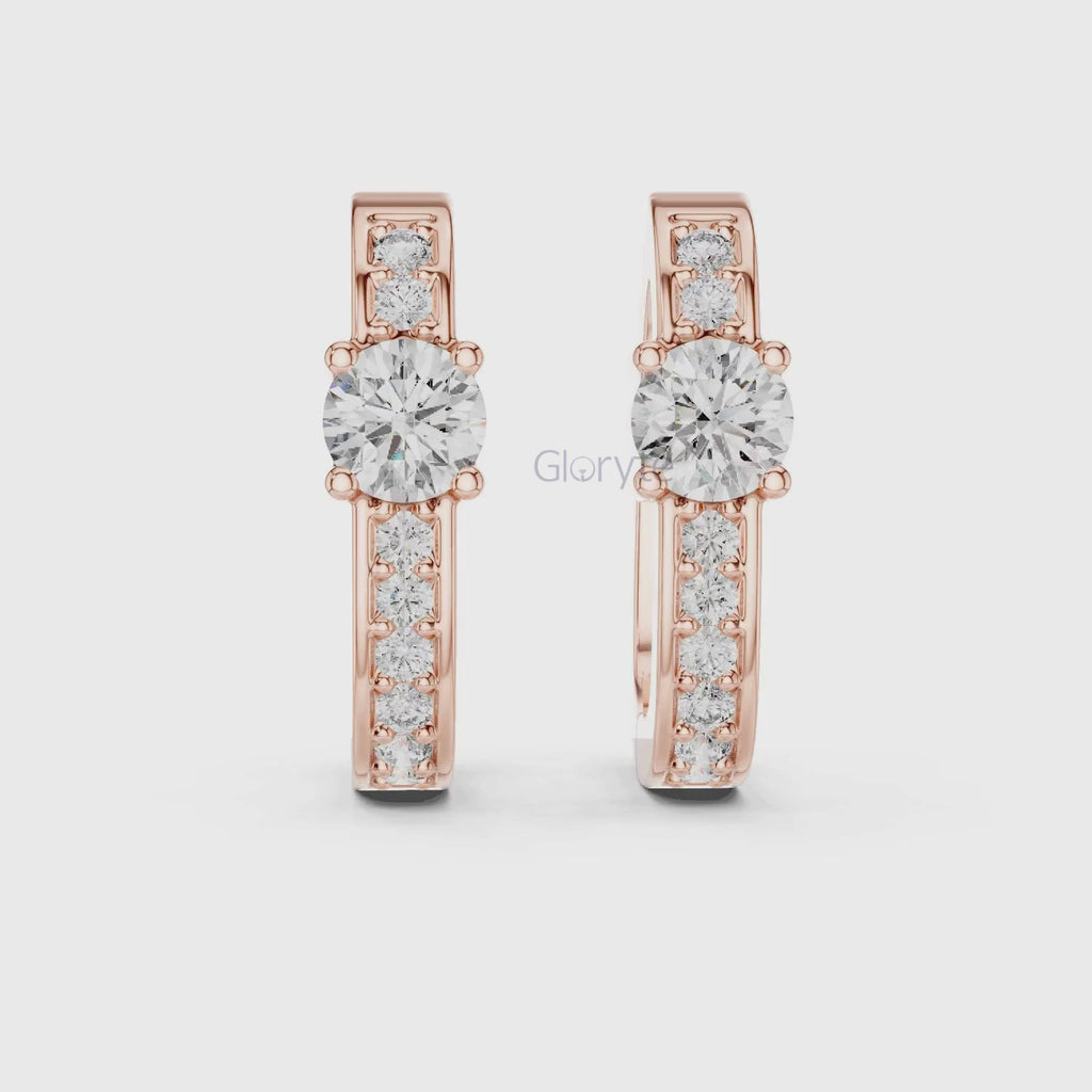 Style: Hoop Earrings with Solitaire Center & Pave Accent Stones