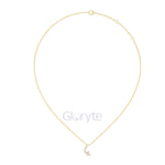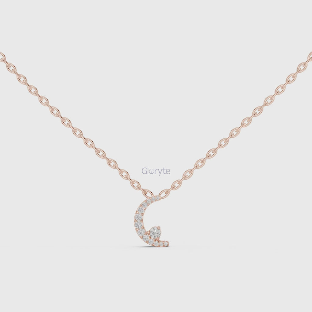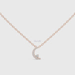 Elegant and symbolic, this pendant features a crescent moon design set with shimmering round diamonds. The graceful curve of the moon paired with a central solitaire diamond creates a luminous celestial charm. A perfect blend of modern minimalism and timeless romance, making it a versatile piece for everyday wear or special occasions.