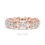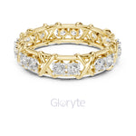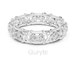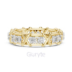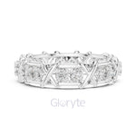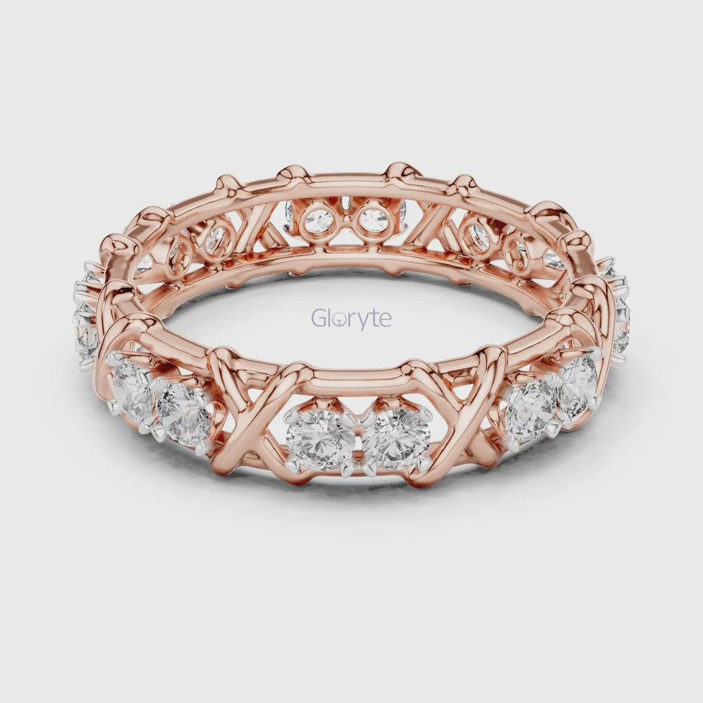 A bold twist on timeless luxury, the Gloryte Criss-Cross Diamond Eternity Band features a striking woven lattice design, embracing each diamond in a secure micro prong setting. With 16 brilliant round-cut stones encircling the band, this piece radiates brilliance from every angle.