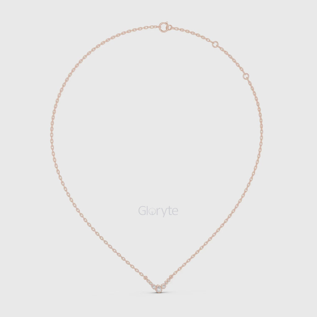 • Modern and delicate, this necklace features a V-shaped pendant crafted with a central pear-cut diamond and complemented by round diamonds in bezel settings. The clustered arrangement adds sparkle and elegance, making it perfect for both everyday wear and special occasions.
