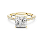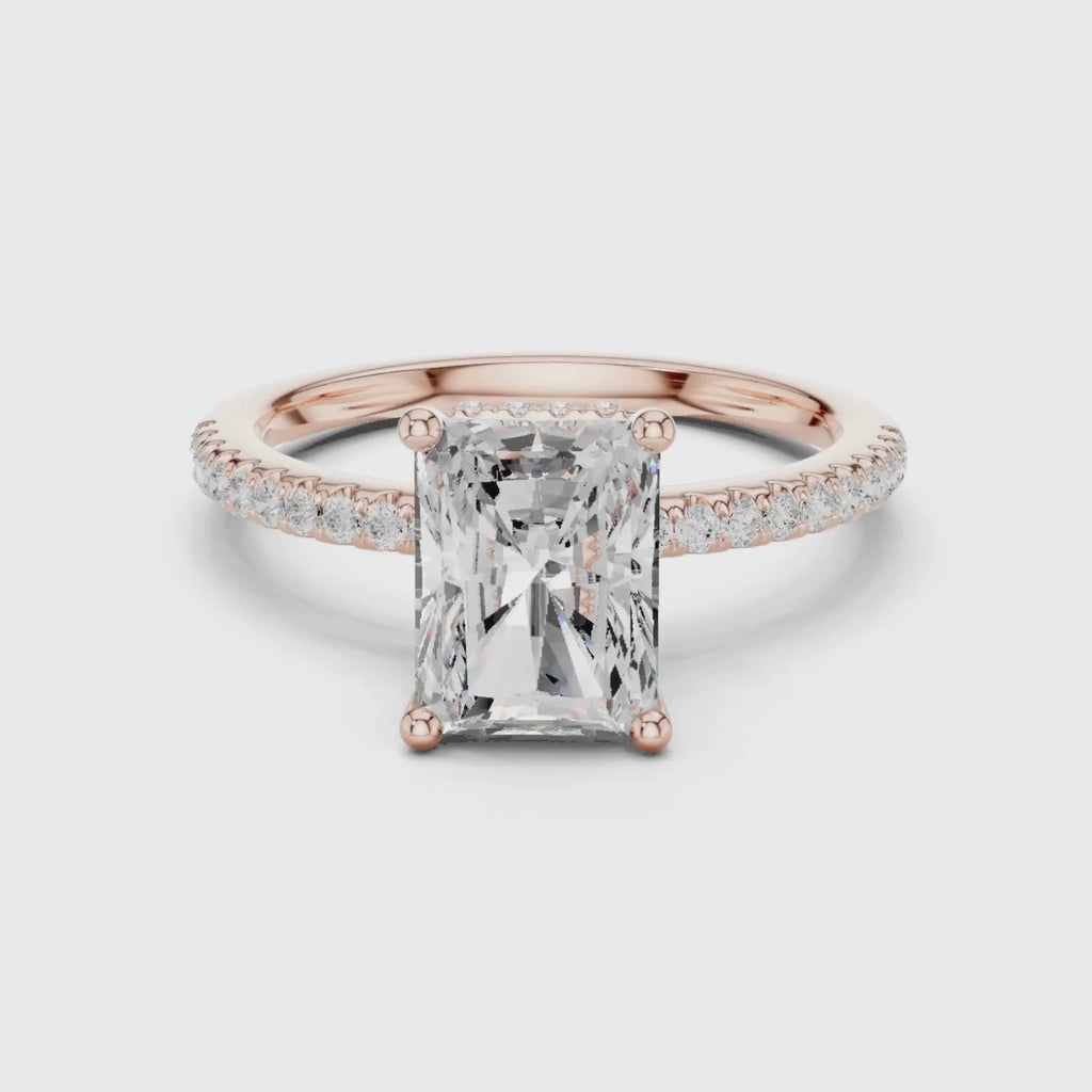 - Diamond Engagement Ring with Hidden Halo & Pave Band