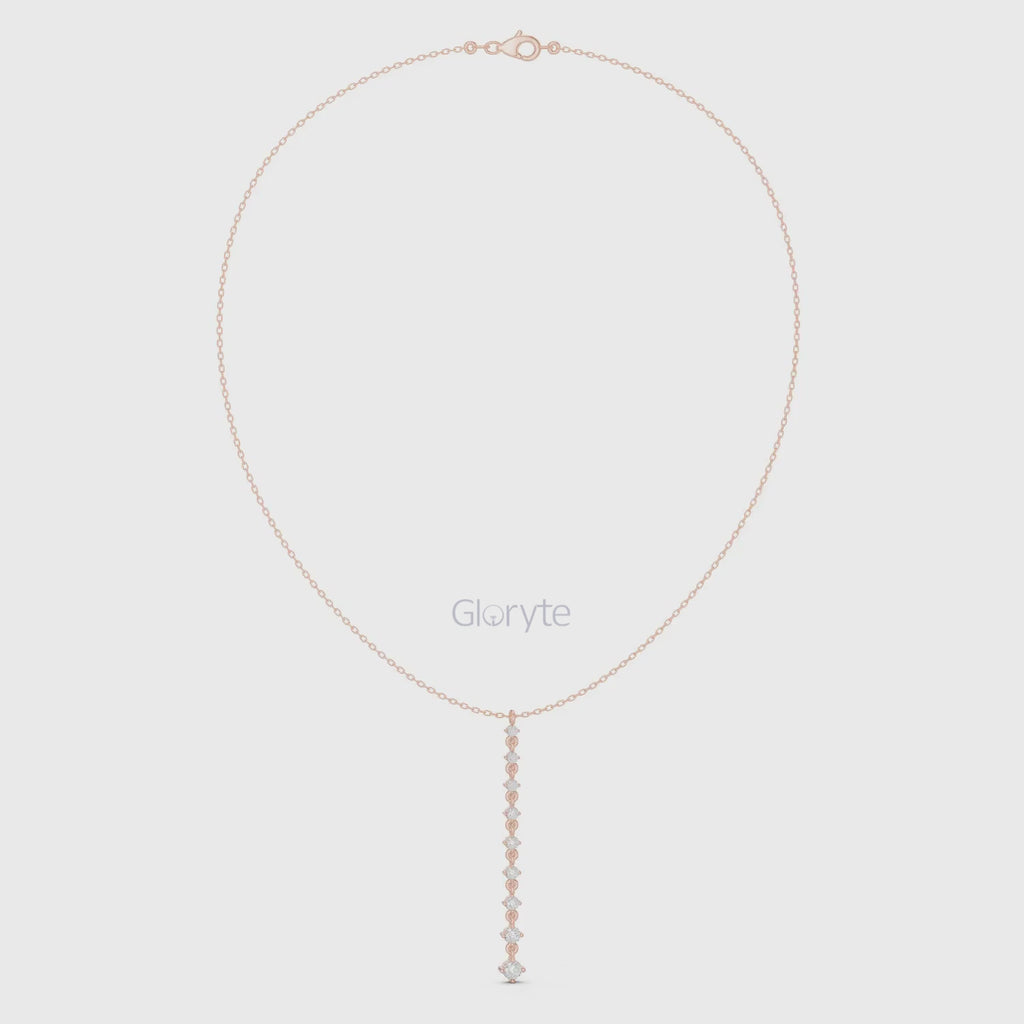 Elegant and timeless, this necklace features a vertical bar pendant set with graduated round diamonds. Each diamond is expertly collet-set to create a refined, minimalist look with maximum brilliance. A versatile piece that can be worn daily or layered for added sophistication.