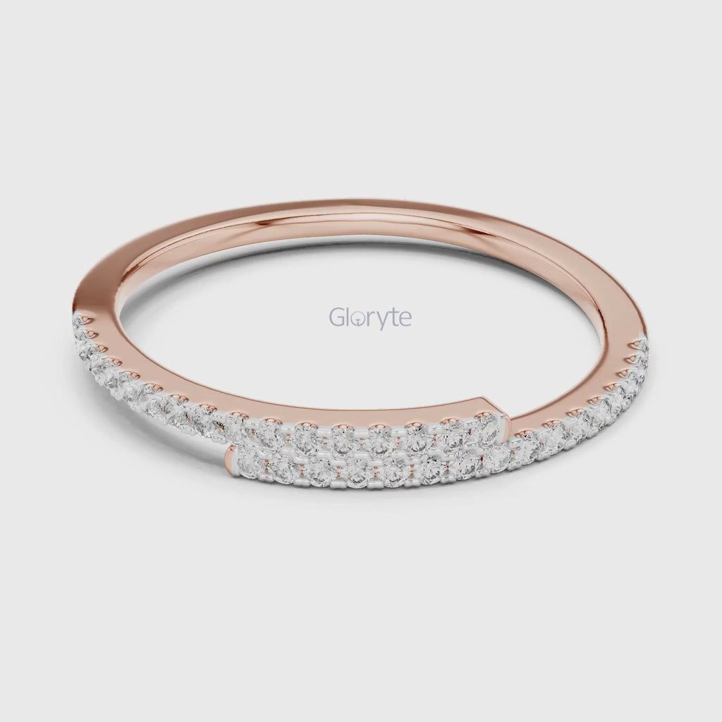 A modern classic, this double-row diamond band is crafted with brilliance and elegance in mind. Featuring two sleek lines of round-cut diamonds set in U-cut style, the ring offers a delicate yet luxurious sparkle that’s perfect for stacking or wearing alone. Its slim, refined profile makes it ideal for daily wear, engagements, or as a statement anniversary band.