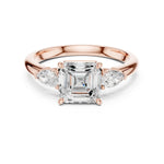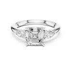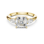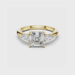 Elegant and timeless, this three-stone engagement ring features a stunning 2.00ct center diamond, beautifully flanked by two pear-shaped side diamonds totaling 0.50ct. The combination of the step-cut Asscher and brilliant-cut pears creates the perfect balance of sophistication and brilliance. Crafted in your choice of 14K /10K, this design highlights the beauty of symmetry, sparkle, and luxurious craftsmanship.