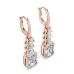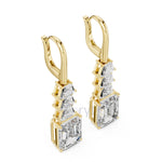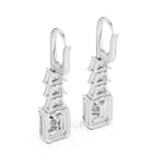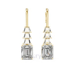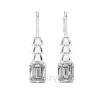 Elevate your style with these emerald elegance drop earrings, crafted to capture the brilliance of timeless design. Featuring bold trapezoid-cut and emerald step-cut diamonds, these earrings create a refined silhouette with a touch of modern sophistication. The graduated diamond arrangement ensures maximum sparkle from every angle, making them the perfect statement piece for special occasions.
