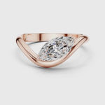 A graceful wrap-style ring featuring a marquise-cut diamond set horizontally in a sleek band. The minimalist design highlights the brilliance of the diamond, offering a modern and elegant look. Perfect as a statement ring or a unique engagement ring.