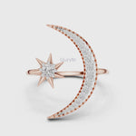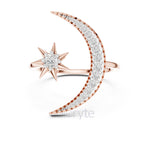 This enchanting Moon & Star Ring captures the beauty of the night sky, featuring a crescent moon lined with sparkling diamonds and a radiant star centerpiece. Perfect for dreamers, romantics, and stargazers, this ring symbolizes hope, guidance, and infinite possibilities.