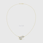 A modern and stylish necklace featuring a pear-cut and marquise-cut diamond duo in a unique collet setting. This minimal yet bold design balances elegance with contemporary flair, making it perfect for both layering and standalone...