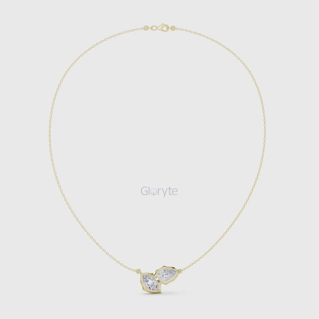 • A modern and stylish necklace featuring a pear-cut and marquise-cut diamond duo in a unique collet setting. This minimal yet bold design balances elegance with contemporary flair, making it perfect for both layering and standalone wear.