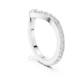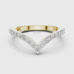 Elevate your ring stack with this elegant V-shaped diamond band, crafted to frame your engagement ring or shine on its own. The graceful chevron design is adorned with lab-grown diamonds or moissanite, offering brilliant sparkle and a modern silhouette. Perfect as a wedding band, stacking ring, or a stylish everyday piece.